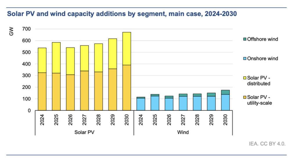 O último relatório da IEA reduz sua previsão de crescimento de energia renovável para 2025-2030 em 5% em comparação com a publicação do ano passado, correspondendo a uma perda de 248 GW de capacidade renovável.