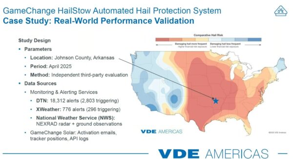 A Game Change trabalhou com a VDE Americas para implementar os modelos usados para criar as condições de gatilho para seu sistema HailStow e validar seu desempenho em campo. A tecnologia HailStow pode ser adaptada às instalações existentes do Genius Tracker para prolongar sua vida operacional.