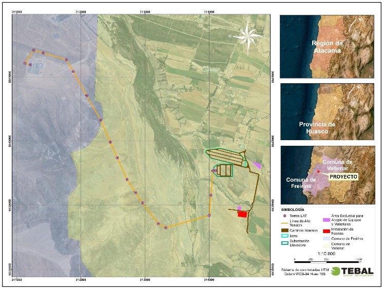 A iniciativa será localizada na província de Huasco, nos municípios de Vallenar e Freirina, com acesso pela Rota 5 Norte e pela Rota C-484. A área total considerada é de 55,24 hectares.