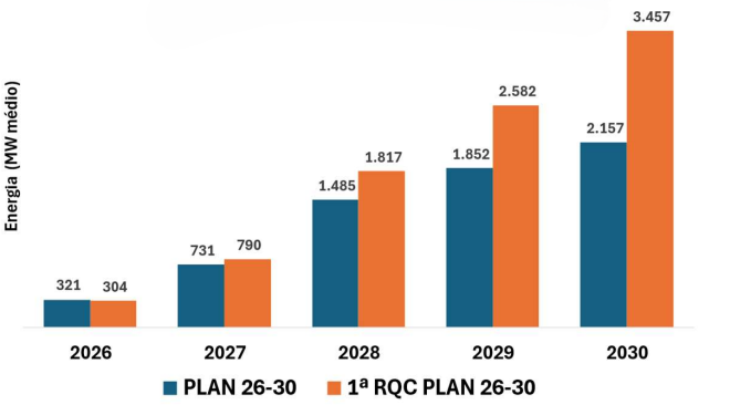 Os contratos e pedidos favoráveis representam uma carga, ou demanda de energia, adicional de 3.475 MW médios no sistema até 2030, sendo 304 MW médios conectados já em 2026. Em relação as previsões iniciais divulgadas em dezembro, a carga prevista aumentou em 1.300 MW médios.