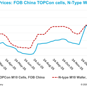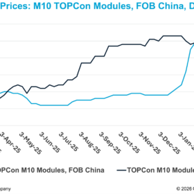 Em fevereiro, os preços dos módulos solares aumentaram €0,01 (US$ 0,012)/W para €0,015/W, elevando os níveis de 15% a 18% acima da mínima de dezembro de 2024, apesar da queda nos custos dos wafers, à medida que os fabricantes buscam restaurar as margens após perdas prolongadas.