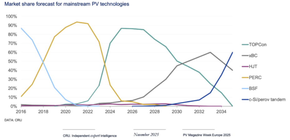 A partir de 2030, a análise da CRU prevê que as tecnologias em tandem ganharão impulso em larga escala. “Isso é impulsionado pela busca do mercado por maior eficiência, que só pode ser alcançada por dispositivos em tandem”, explicou Morgan.