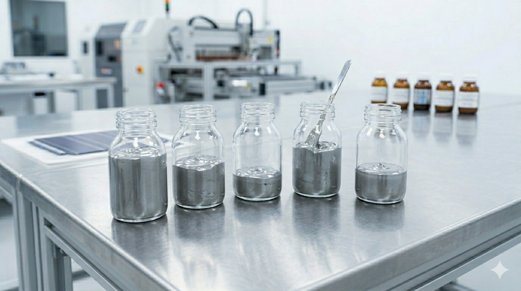 Essa triagem levou à identificação de pós de prata de alta atividade, nomeadamente Dowa4-8F, H1-2 e YZ17N1, bem como sistemas de vidro combinado, como TG1 para aplicações TOPCon e LG1 para aplicações LECO. Juntas, essas seleções permitiram o desenvolvimento de formulações específicas de pasta de prata para processos, otimizadas para os requisitos distintos de cada arquitetura de célula.
