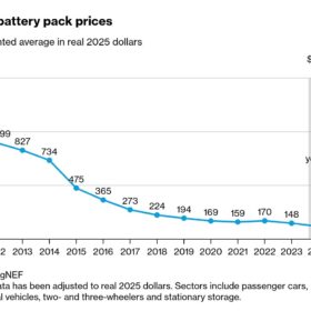 Os preços das baterias para armazenamento estacionário caíram para US$ 70/kWh em 2025, uma queda de 45% em relação a 2024, tornando-se a categoria de íon-lítio mais barata pela primeira vez, de acordo com a BloombergNEF (BNEF).