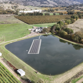 Uma vinícola familiar da Califórnia substituiu a eletricidade da rede por geração de energia solar no local, reduzindo os custos de energia e fornecendo um local de teste real para pesquisa fotovoltaica flutuante.